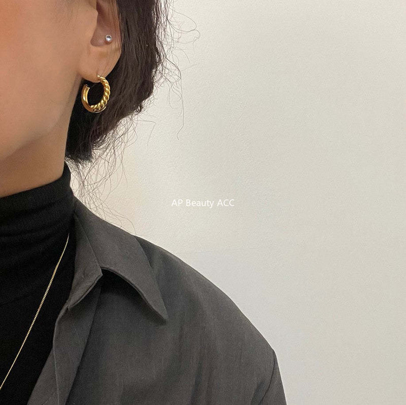 F廠-韓國韓版925純銀耳釘韓風INS極簡編織耳環耳扣銀耳釘女「C874」25.12-1