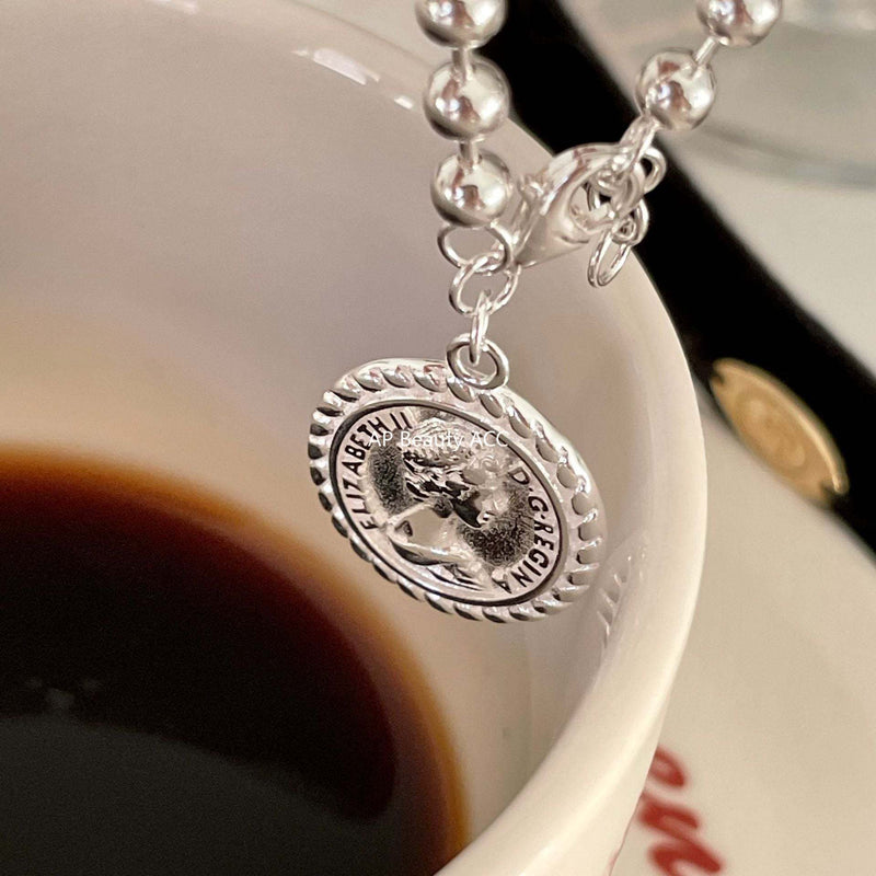 F廠-韓國韓版925純銀銀飾設計鏈條硬幣光珠簡約手鍊手飾「A162」25.12-1