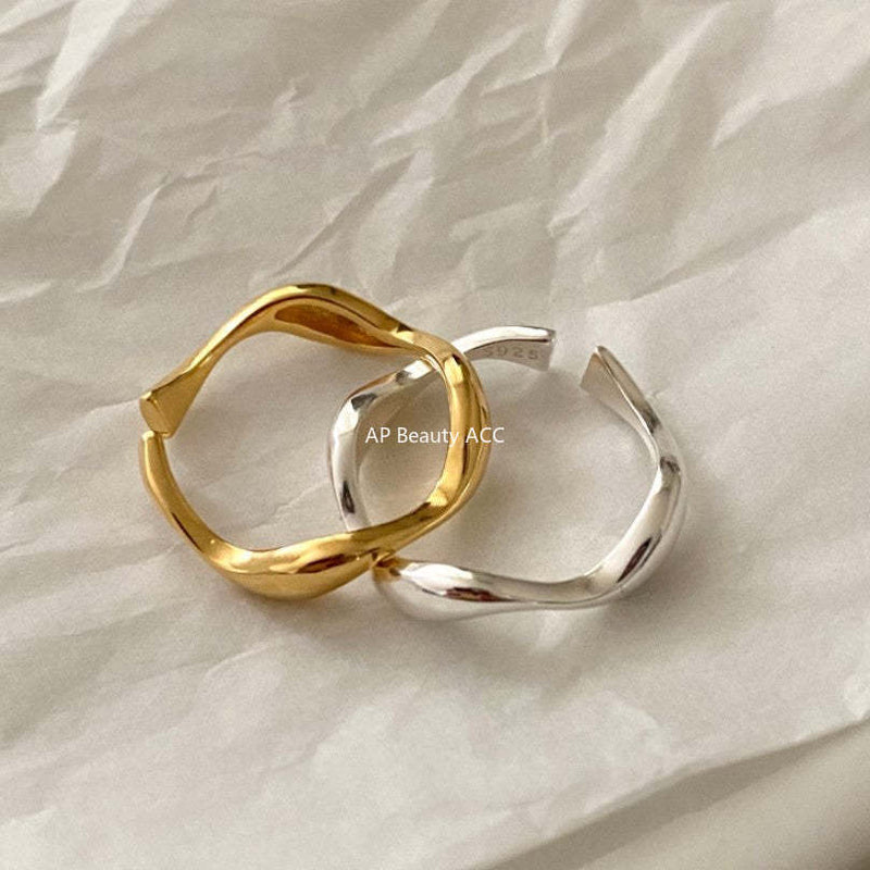 F廠-韓國韓版東大門925純銀戒指簡約氣質百搭自然曲線指環戒指「J1174」25.12-1
