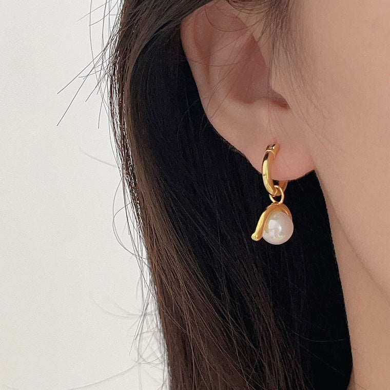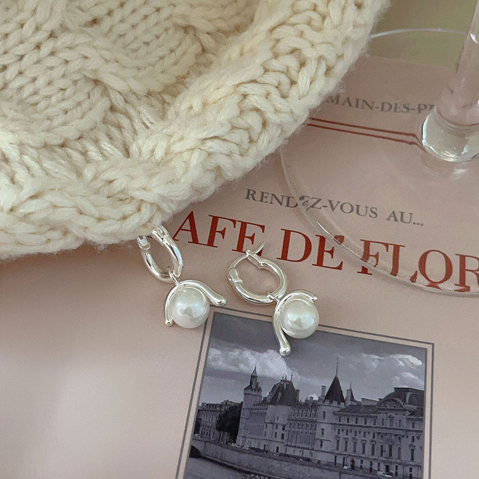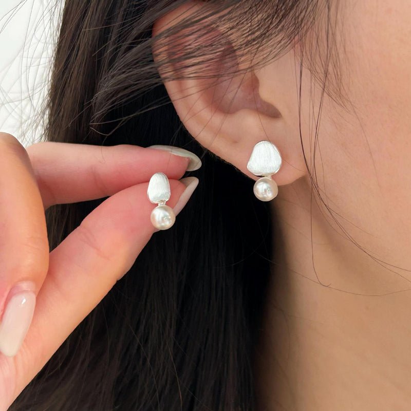 F廠-韓國韓版925純銀拉絲珍珠耳釘耳環簡約氣質百搭ins風耳飾「C1325」24.06-3