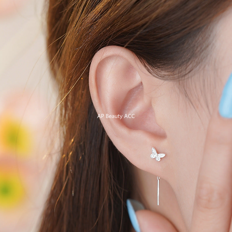 D廠-S999足銀蝴蝶U型螺絲款耳環甜美森系耳線田園風溫柔耳飾「YC2615E_1」25.10-1
