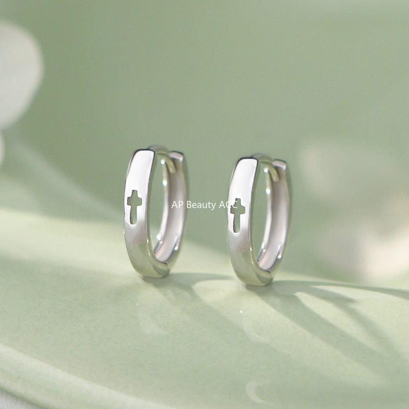 D廠-S925純銀高級鏤空十字耳扣女設計感2025爆款簡約小眾輕奢耳飾批發「YC8554E_1」25.10-1