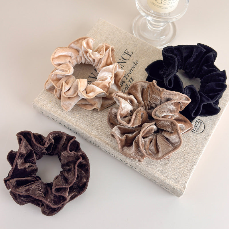 E廠-氣質絲絨木耳邊雙層大腸髮圈女扎頭髮繩低丸子頭繩皮筋髮飾秋冬「26173」25.11-1