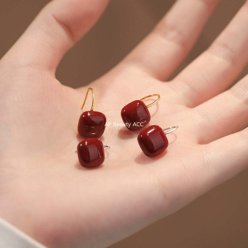 D廠-純銀S925復古幾何簡約紅色復古方塊耳環輕奢中式溫柔小眾耳飾「YC4242E_1」25.12-3