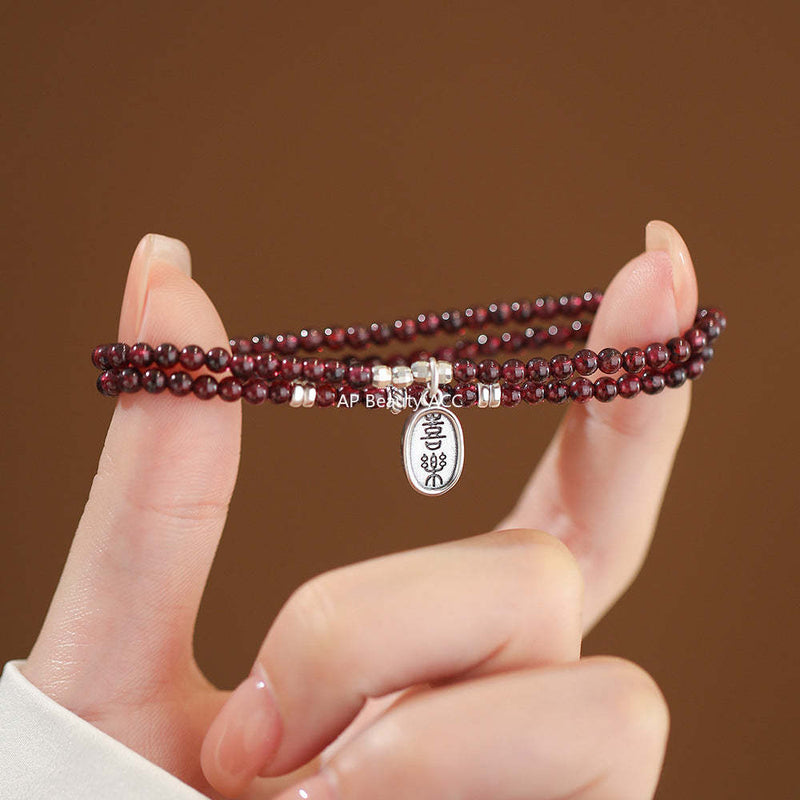 D廠-純銀S925平安喜樂石榴石手鍊復古做舊國風溫柔甜美設計手飾批發「YC4932SL_1」25.12-3