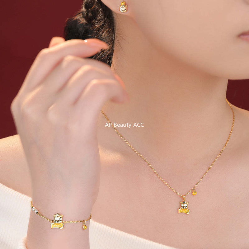 D廠-原創足銀S999柿來運轉大吉大利小馬項鍊輕奢耳釘個性中式手鍊「YC9738E_1 YC5412SL_1 YC0457N_1」25.12-3