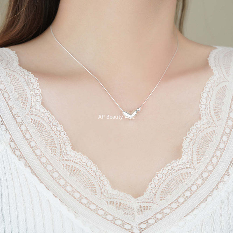 D廠-純銀S925愛心圓珠項鍊女小眾設計復古輕奢甜美可愛簡約鎖骨鏈批發「YC2177N_1」25.12-3
