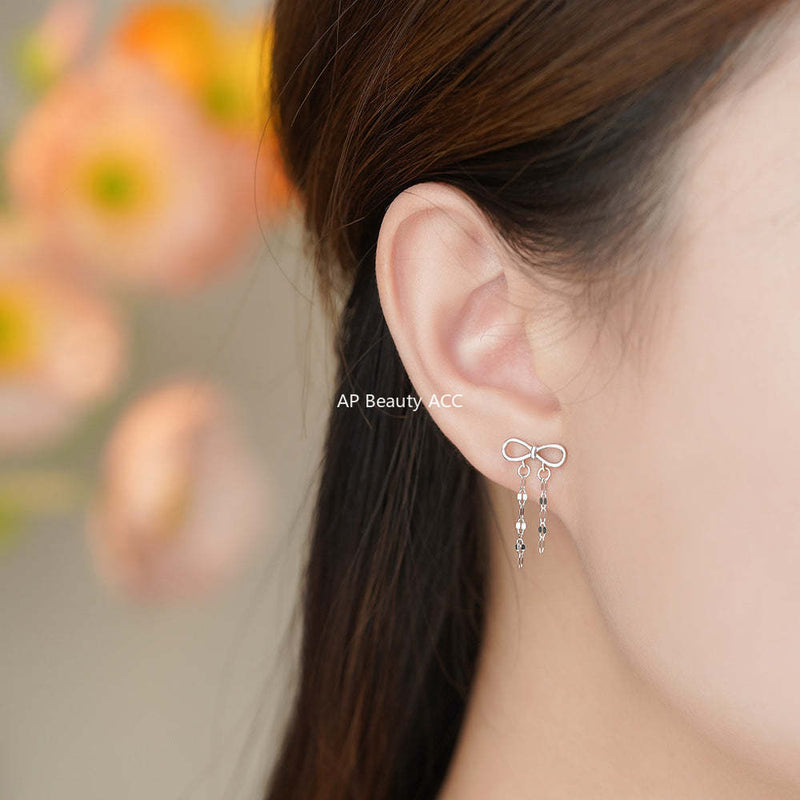 D廠-純銀S925蝴蝶結鏈條耳環女輕奢高級感甜美精緻小眾設計耳飾「YC4061E_1」25.12-3
