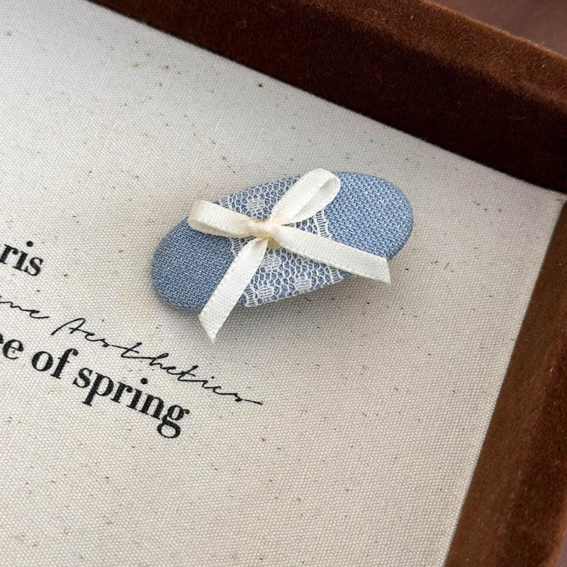 E廠-韓版牛仔布藝蝴蝶結髮夾蕾絲珍珠BB夾碎髮髮卡氣質甜美髮飾頭飾女「25456」24.05-4