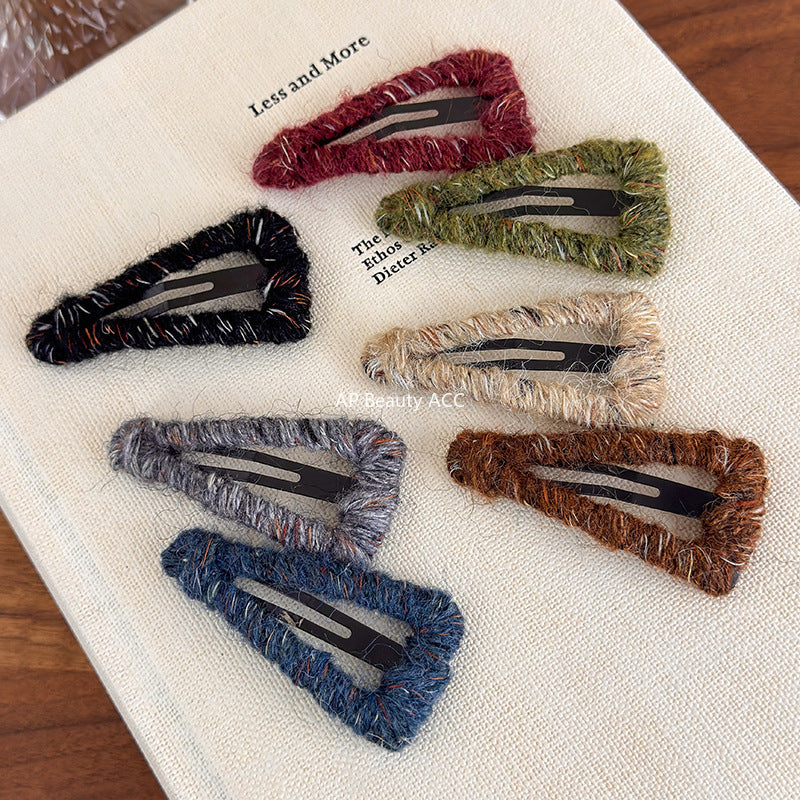 E廠-秋冬毛線纏繞三角形髮夾鏤空bb夾少女心瀏海夾邊夾碎髮夾子髮飾女「27528」25.10-1