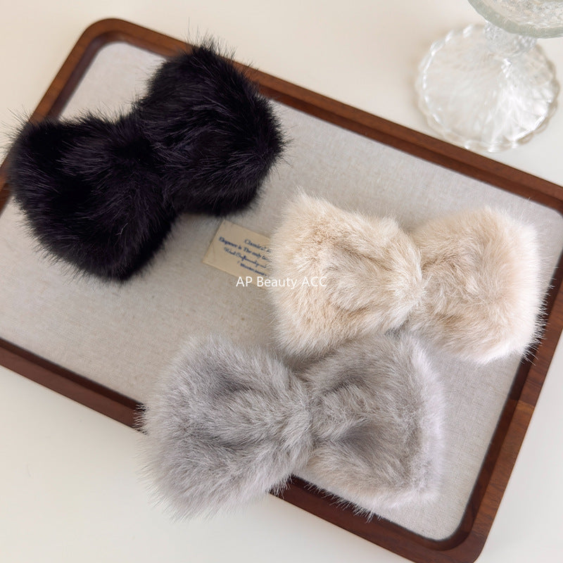 E廠-氣質毛絨蝴蝶結抓夾女2025新款高級感髮夾鴨嘴夾子後腦勺盤髮頭飾「27545」25.10-1
