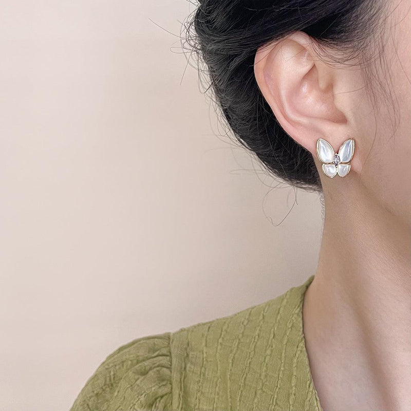 A廠-白母貝時尚通勤優雅氣質高級感鍍14K簡約甜美蝴蝶耳環女貝殼耳飾「4704」24.08-3