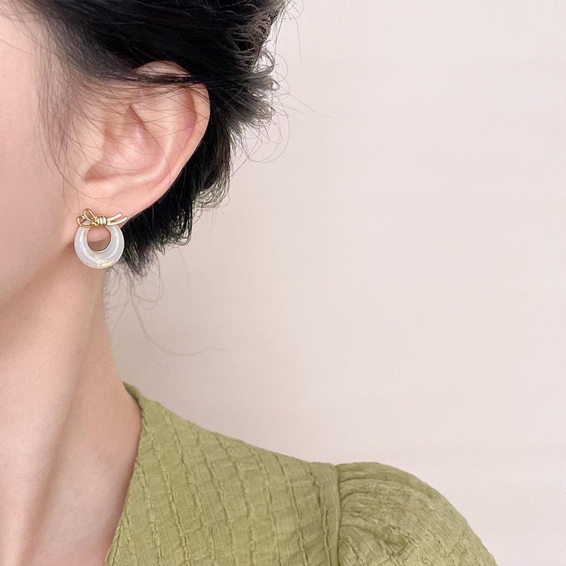 A廠-法式溫柔鍍14K氣質優雅繫耳環四季溫暖暈染色蝴蝶結圓形耳飾工廠「4499」24.09-2