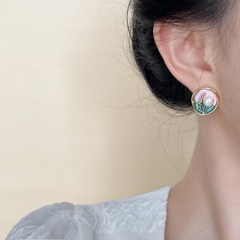 A廠-淡水珍珠忘憂草油畫系列麥穗花朵鍍14K耳環 清新甜美工廠耳飾批發「4840」24.09-2