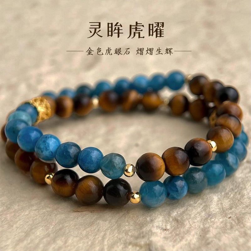 A廠-雙層疊戴天然石磷灰石虎眼石手鍊文藝復古民族風新款手飾工廠飾品「S240」25.03-4
