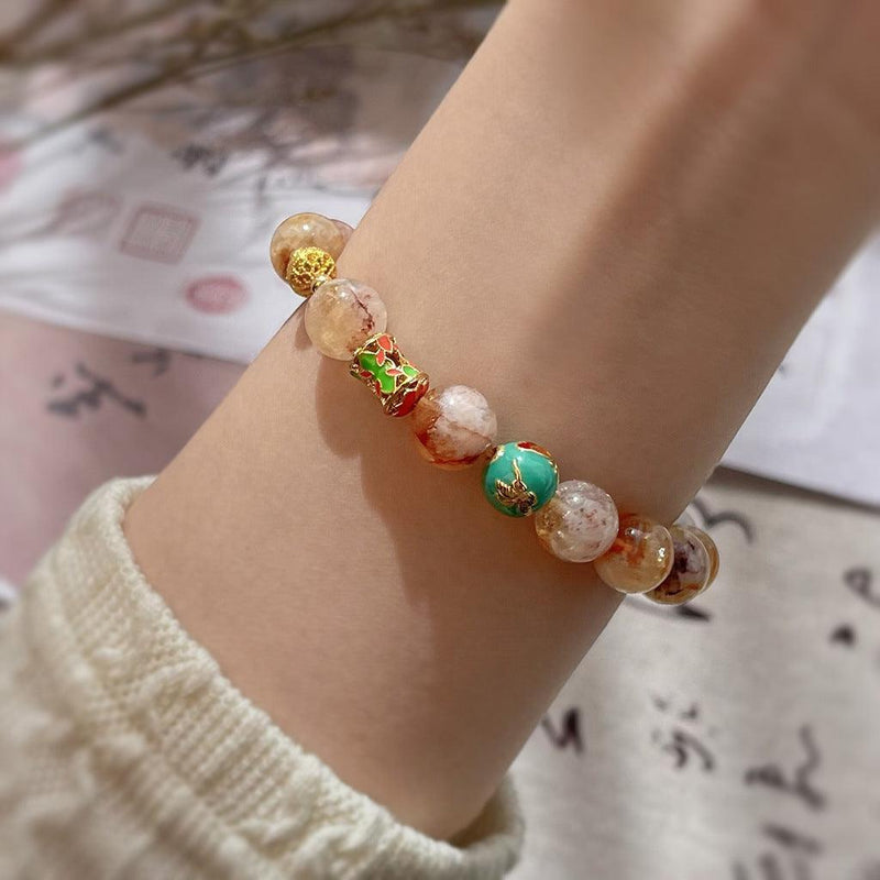 A廠-新中式天然石黃塔晶水晶手鍊原創設計師2025年全新手飾琺瑯手串女「S237」25.04-1