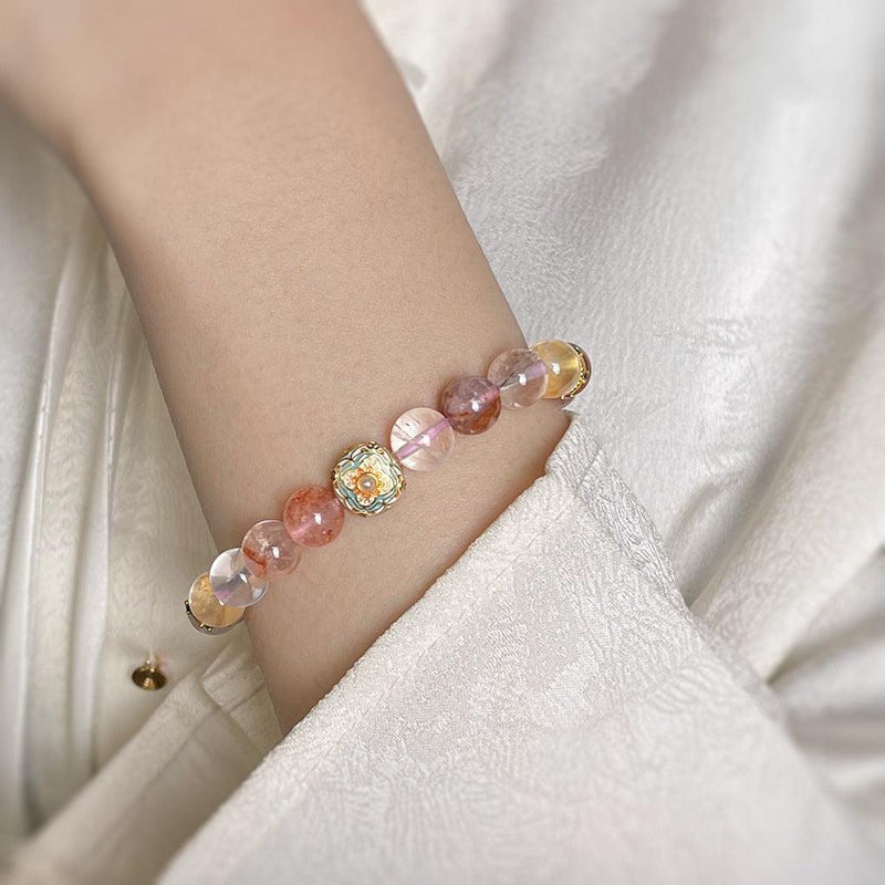 A廠-【紅膠花】天然石水晶招桃花系列手鍊高級感生日禮物手飾輕奢手串「5418」25.01-1