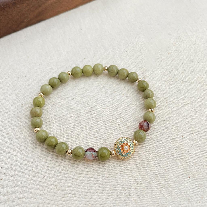A廠-牛油果阿拉善天然石森系清新甜美春季原創琺瑯滴釉彩繪手鍊手飾女「5415」25.01-2