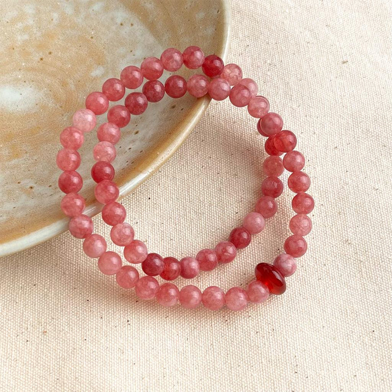 A廠-粉紅心天然石太陽石疊戴手鍊寓意招桃花新中式手工甜美手飾女飾品「5684」25.03-1
