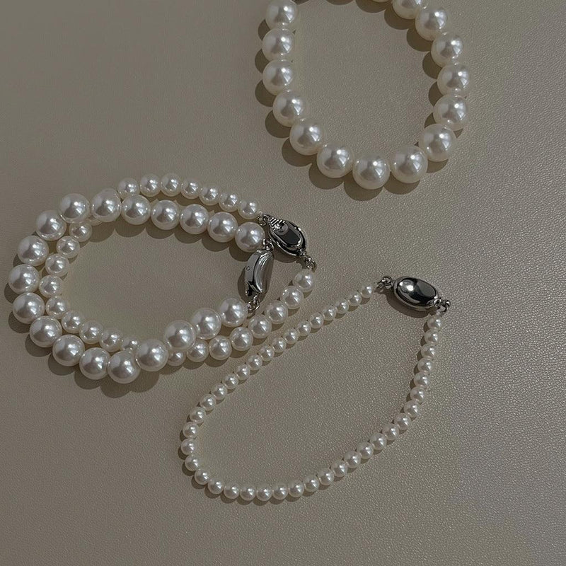 A廠-玻璃施家珍珠手鍊高品質輕奢風簡約ins氣質正圓珍珠手飾工廠飾品「4479-4482」24.07-2