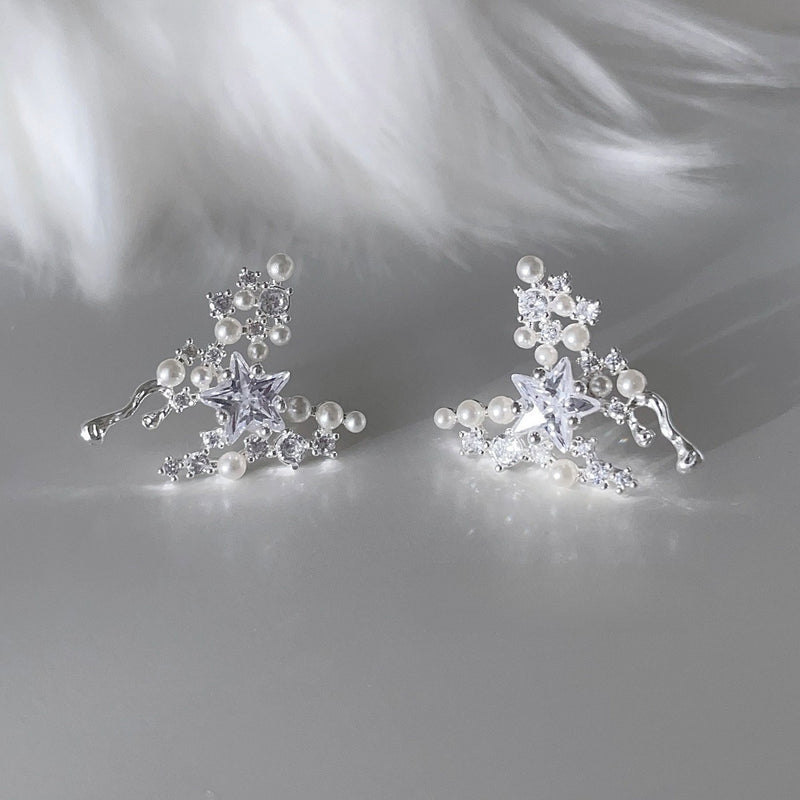 C廠-輕奢爆閃星星鋯石耳釘女氣質小香風珍珠耳環小眾高級感百搭耳飾「EH-4146」25.10-1