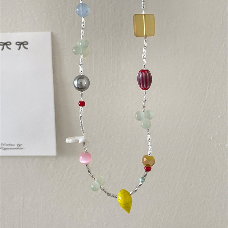 C廠-多巴胺彩色玉石項鍊女輕奢小眾設計感貝殼串珠鎖骨鏈百搭高級頸鏈「XL-1215」25.10-1