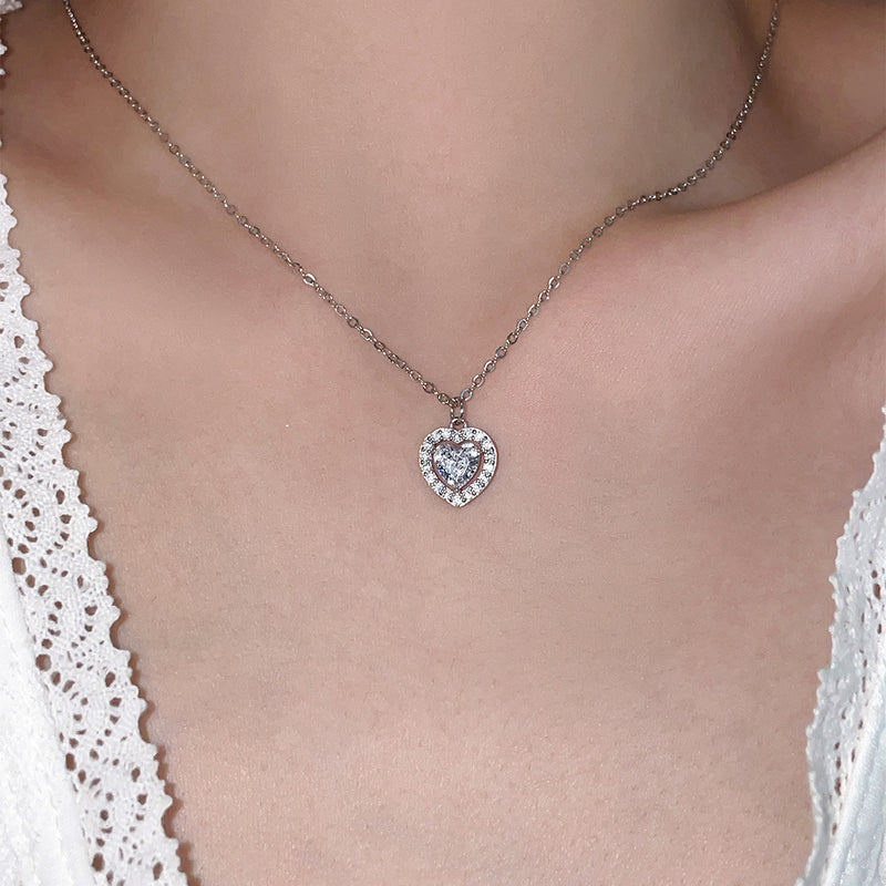 C廠-復古宮廷風愛心鋯石項鍊女簡約精緻氣質純銀鎖骨鏈時髦高級感頸鏈「XL-1206」25.10-1