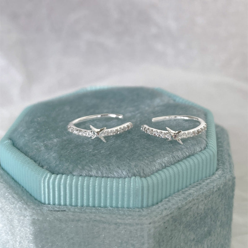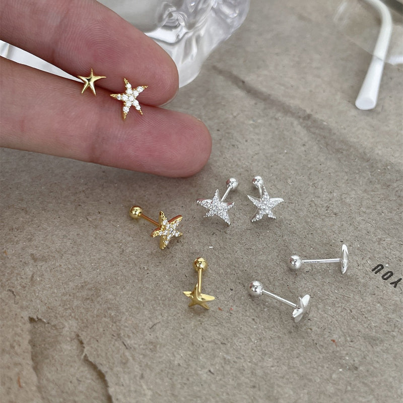 C廠-925純銀四芒星耳釘女輕奢冷淡風高級感鋯石耳環精緻百搭時尚耳飾「EH-4129」25.10-1
