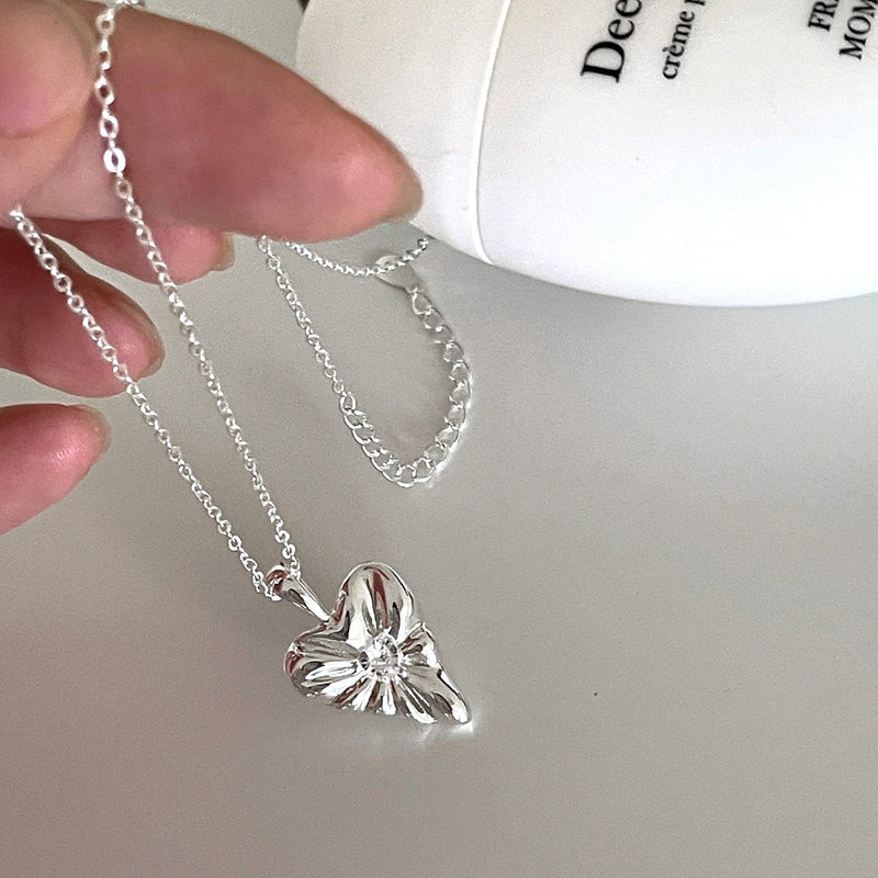 C廠-簡約褶皺愛心項鍊女小眾設計感通勤純銀鋯石鎖骨鏈輕奢高級感頸鏈「XL-1204」25.10-1
