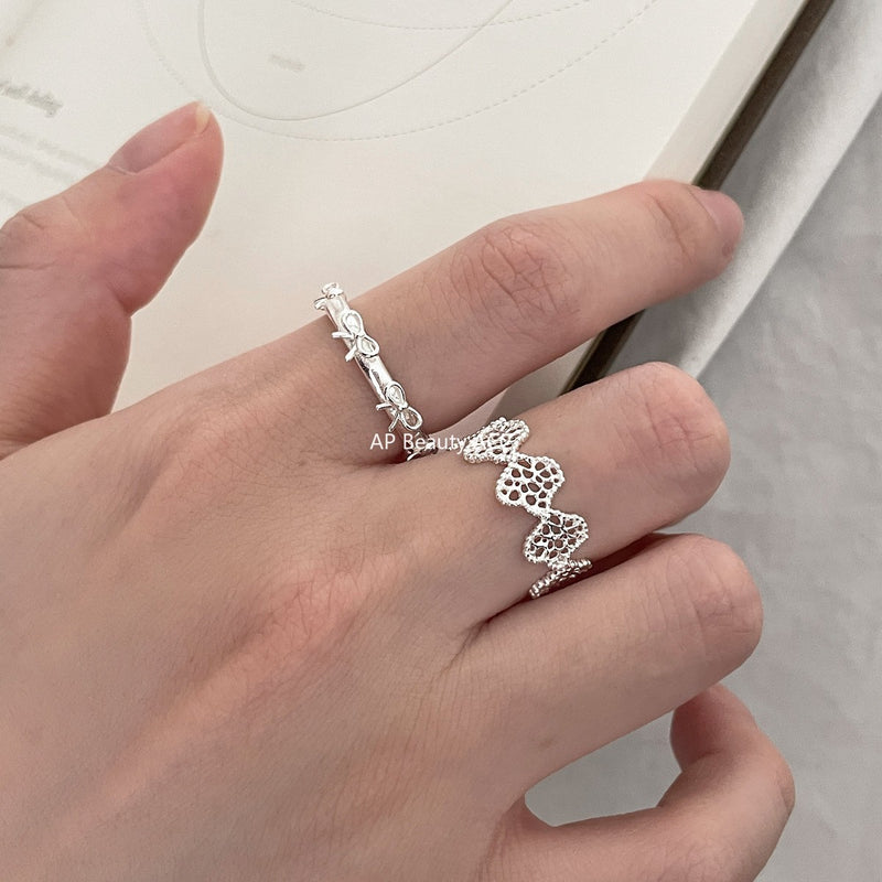 C廠-宮廷風蕾絲花邊純銀戒指輕奢小眾高級感蝴蝶結食指戒百搭氣質指環「JZ-0726」25.11-1