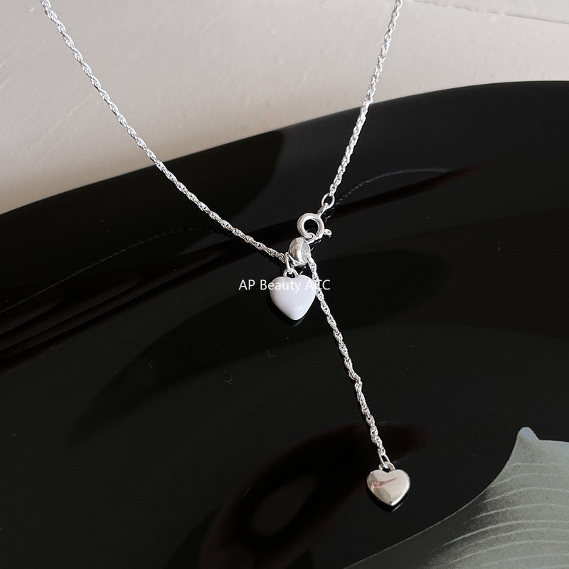 C廠-925純銀韓版抽拉式愛心吊墜項鍊女ins風簡約百搭OL通勤日常鎖骨鏈「XL-1222」25.11-1