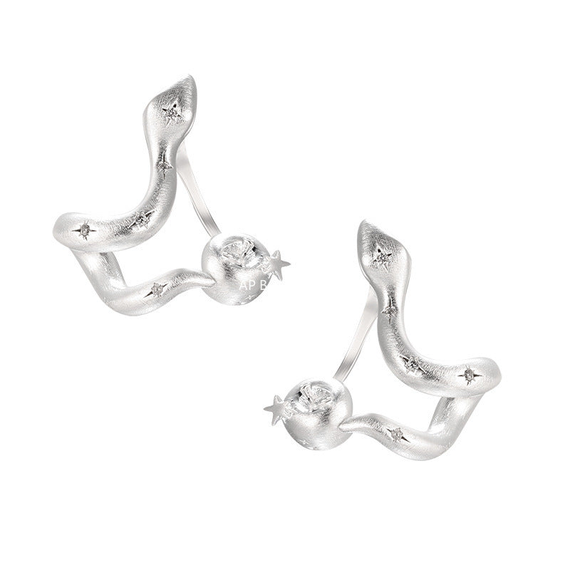 C廠-精緻甜美童趣風小蛇追蘋果銀針耳釘女小眾獨特高級感耳環秋冬耳飾「EH-4118」25.11-1