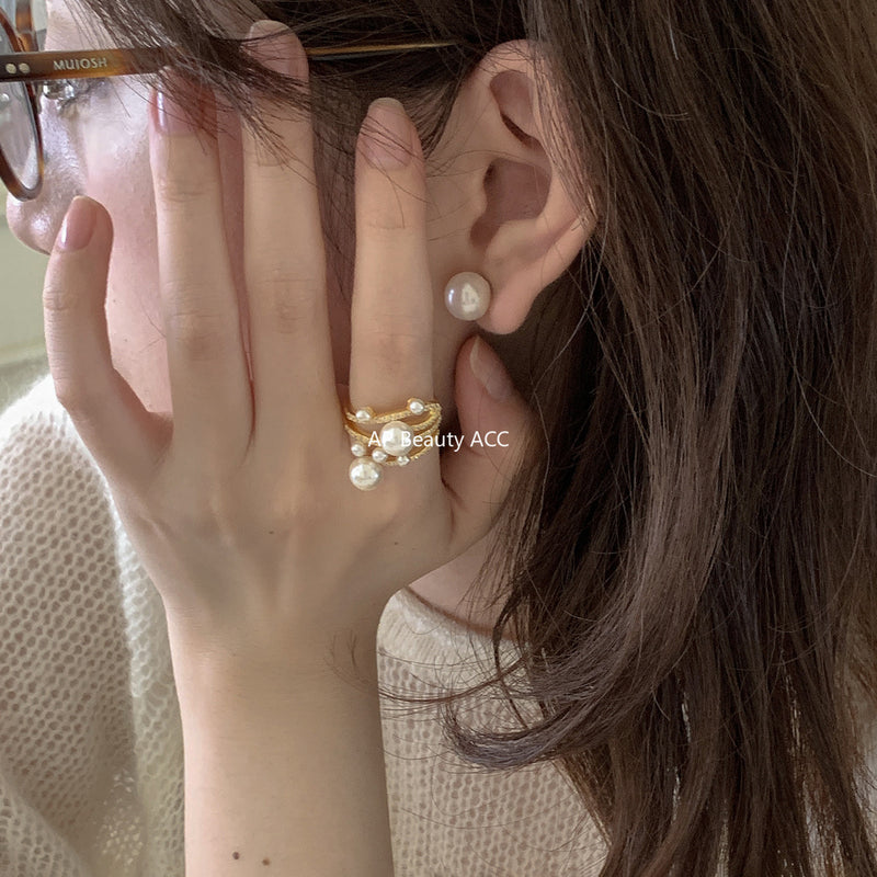C廠-韓版優雅氣質冷淡風珍珠戒指女復古百搭高級感食指戒小眾設計指環「JZ-0728」25.11-1