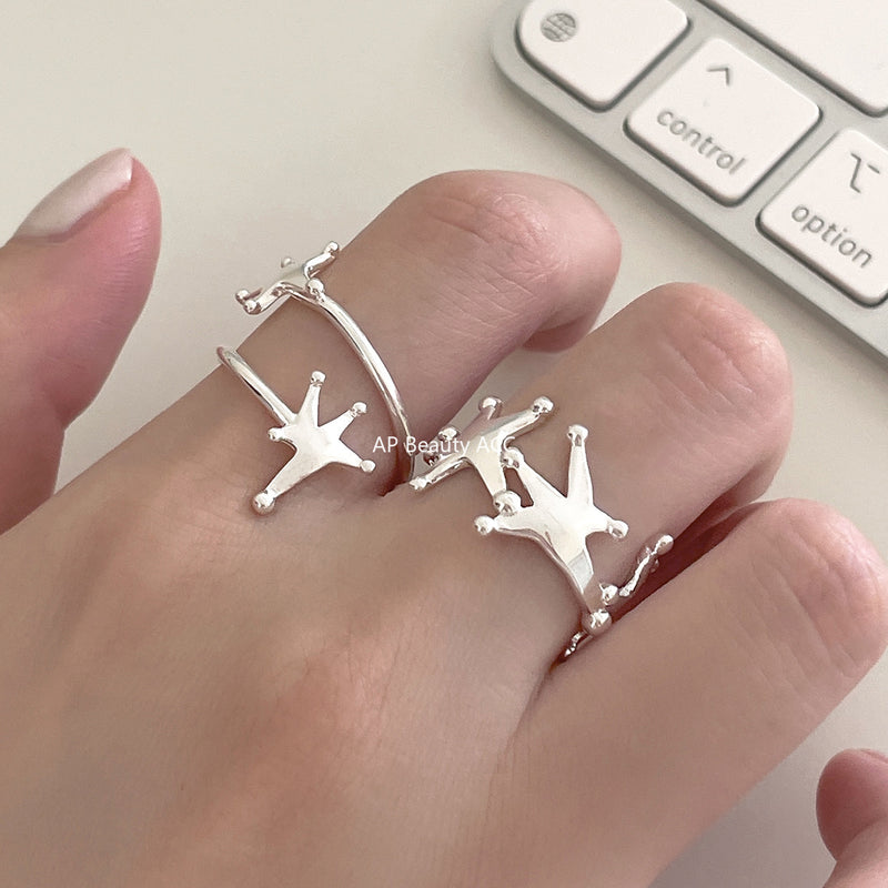 C廠-韓版純銀旋轉星星戒指女復古時尚設計感指環小眾高級感ins食指戒「JZ-0716」25.11-1