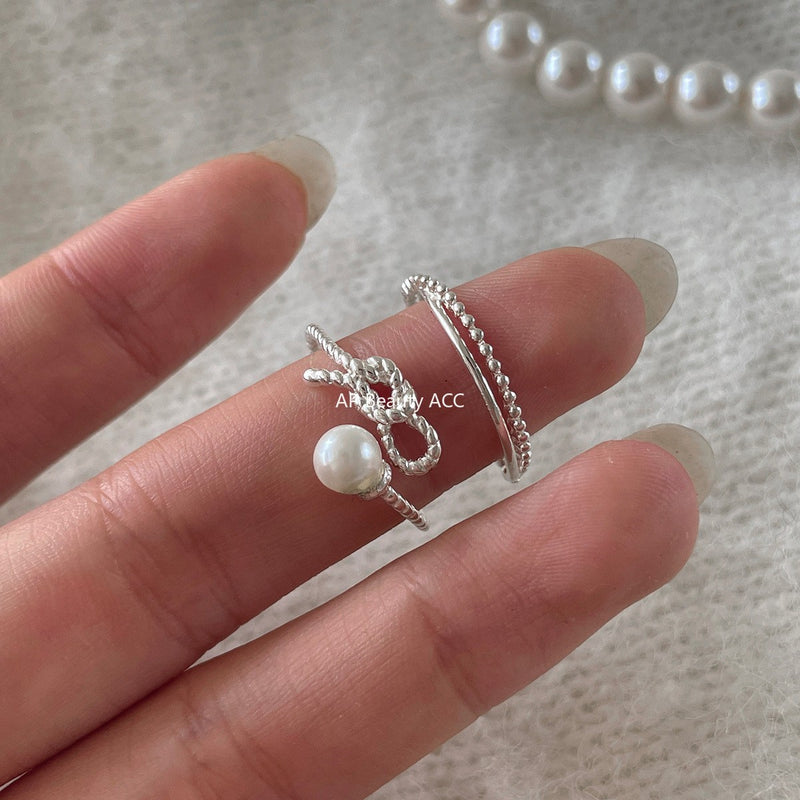 C廠-甜美珍珠戒指女極簡冷淡風氣質優雅925純銀交叉開口指環百搭指戒「JZ-0702」25.11-1