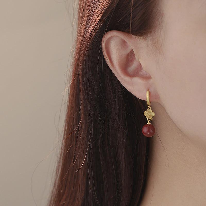 D廠-S999足銀祥雲紫金砂耳扣本命年喜慶獨特設計新中式耳飾批發「YC2194E_1」25.02-3