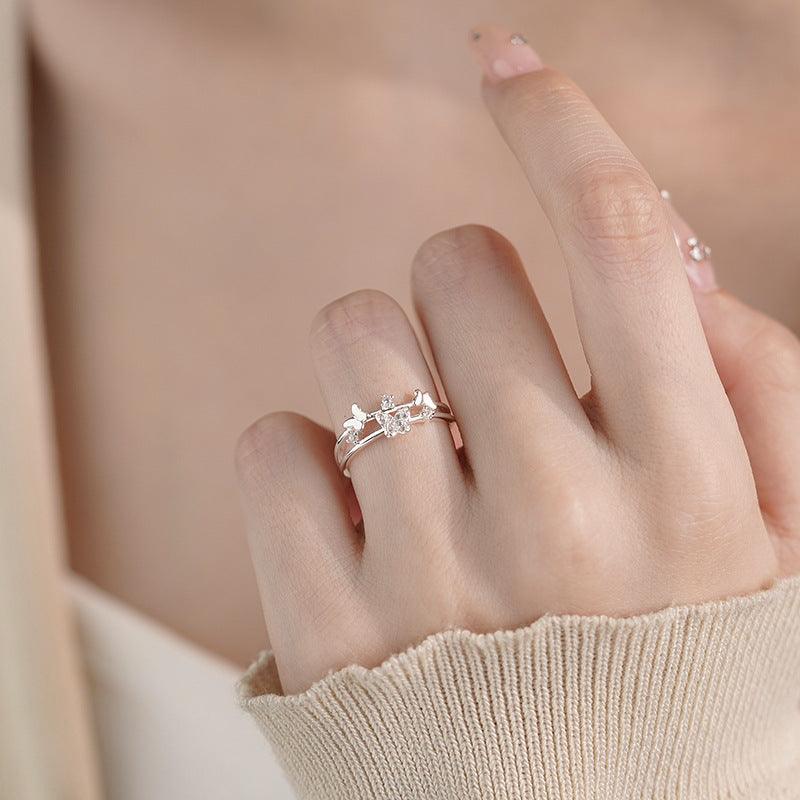 D廠-S925純銀氣質鋯石蝴蝶雙層戒指學生百搭通勤森系開口指環批發「YC5089R_1」25.03-4