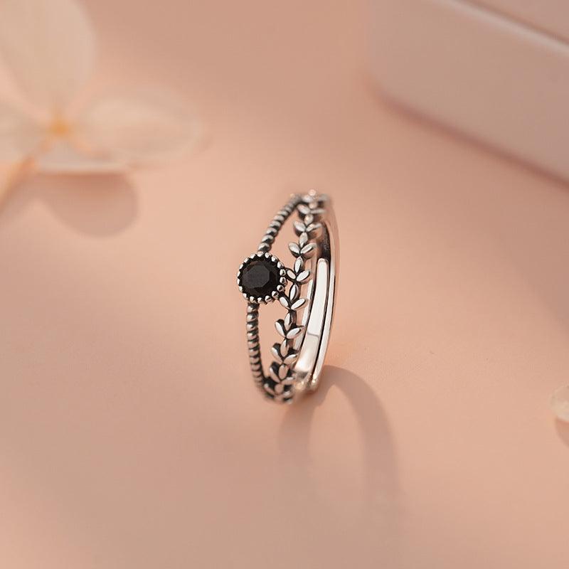 D廠-S999足銀復古樹葉雙層戒指女文藝國風百搭通勤開口指環「YC4596R」25.04-1