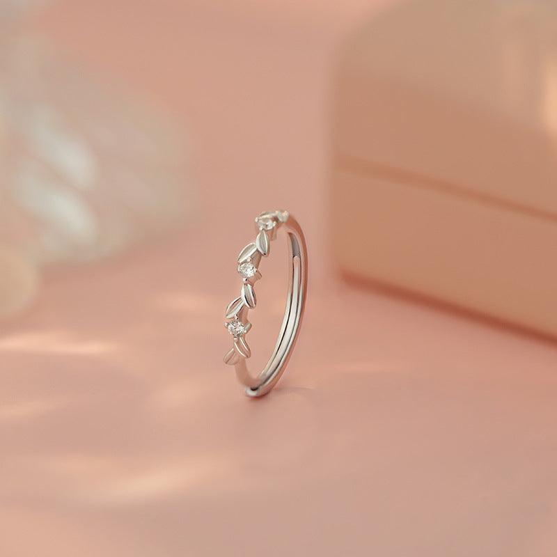 D廠-S999足銀輕奢葉子戒指女百搭高級感氛圍感森系開口指環批發「YC5034R_1」25.04-1