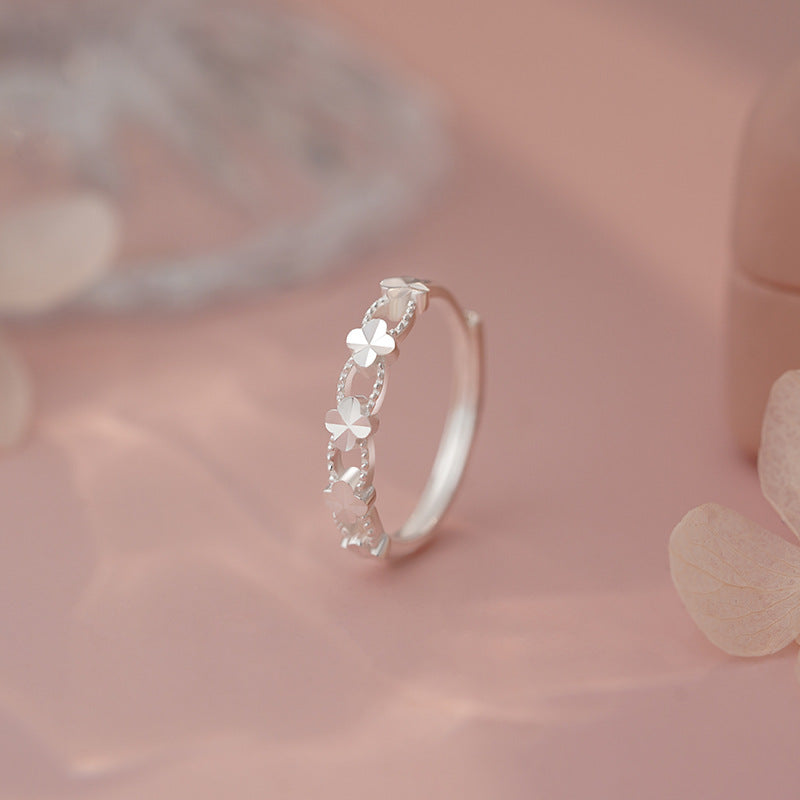 D廠-S999足銀輕奢四葉草鏤空戒指女甜美韓版韓式田園風指環批發「YC5408R_1」25.05-1