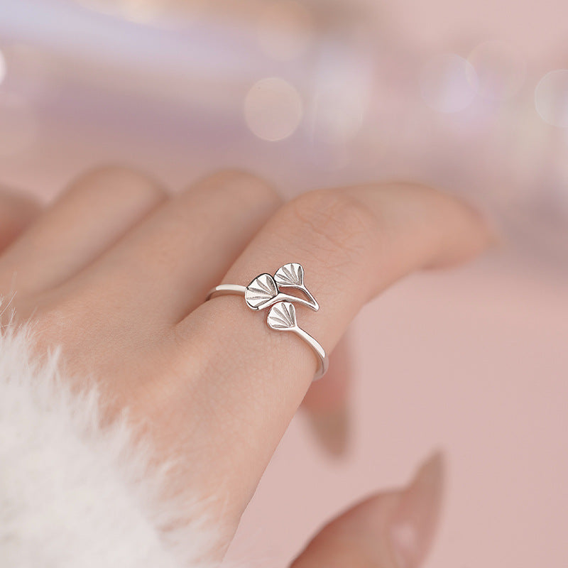 D廠-S999足銀優雅杏葉戒指女氛圍感高級甜美森係可調節指環批發「YC4994R」25.06-4