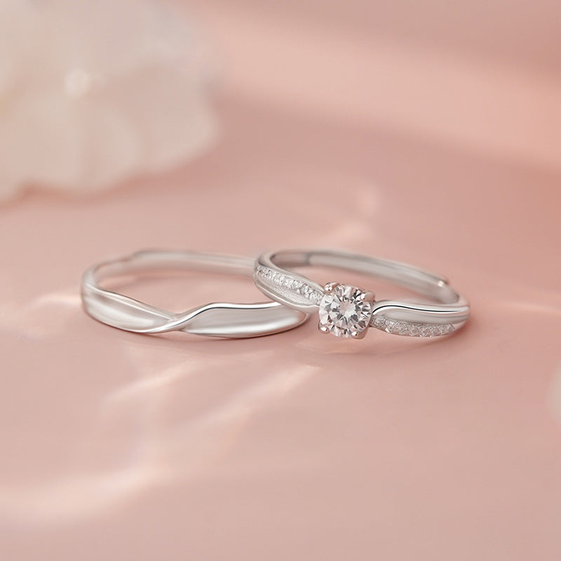 D廠-S999足銀甜美同心結鋯石情侶對戒輕奢高級感新款爆款戒指批發「YC3105R_1 YC3312R_1」25.07-2