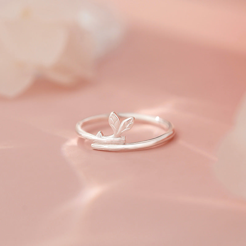D廠-S999足銀輕奢樹枝樹葉小芽開口戒指女感氛圍感森系高級感指環批發「YC3900R_1」25.07-2